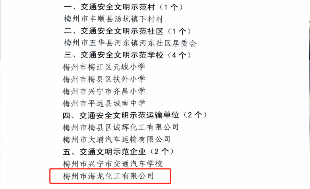 海龍化工積極響應(yīng)交通安全文明要求,自公司成立以來,深耕文明交通行動領(lǐng)域,致力于建設(shè)安全文明、和諧有序的道路交通環(huán)境工作,為營造文明和諧的城市環(huán)境貢獻(xiàn)力量。公司始終貫徹“安全第一,預(yù)防為主”的安全工作方針,注重交通安全文明建設(shè),通過加強(qiáng)教育、健全制度,強(qiáng)化監(jiān)督等措施,把交通安全作為公司安全生產(chǎn)中重要的一環(huán),認(rèn)真貫徹落實,嚴(yán)格遵守交通法律法規(guī),實現(xiàn)了自公司成立以來無重大交通事故發(fā)生、無人員人身傷亡的目標(biāo),確保了生產(chǎn)經(jīng)營的正常運(yùn)轉(zhuǎn)。