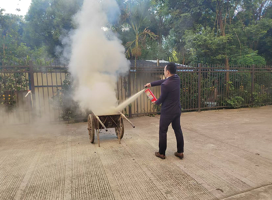 人員由10米外持滅火器奔向火場(chǎng)進(jìn)行滅火,由上風(fēng)向接近著火點(diǎn),站在上風(fēng)處1.5米—2米處用干粉滅火器撲救初起火災(zāi)。
