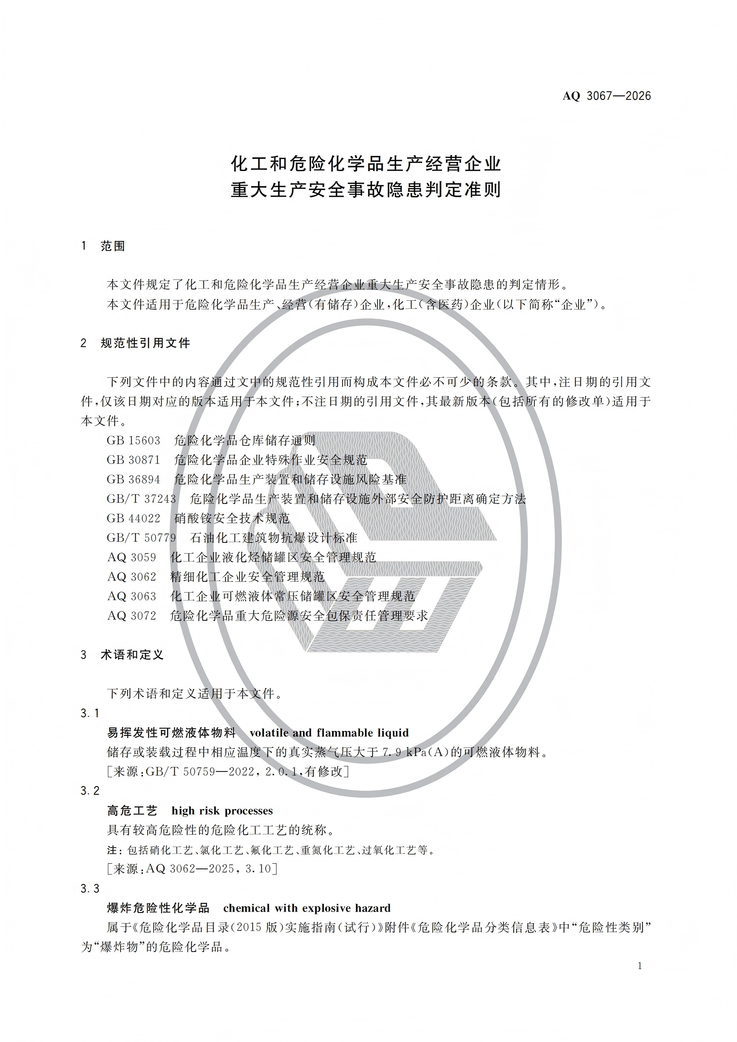 《化工和危險(xiǎn)化學(xué)品生產(chǎn)經(jīng)營企業(yè)重大生產(chǎn)安全事故隱患判定準(zhǔn)則》